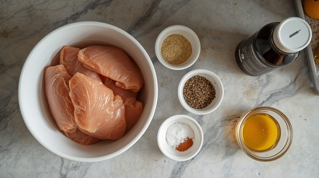 - Chicken breasts – 3 to 4 (about 1 to 1½ pounds)